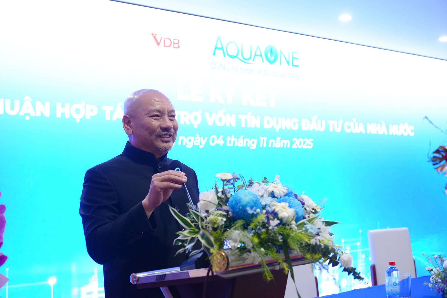 Tại buổi lễ, Ông Lê Văn Hoan - Uỷ viên Ban chấp hành Đảng bộ Chính phủ, Bí thư Đảng uỷ, Chủ tịch Hội đồng quản trị Ngân hàng Phát triển Việt Nam đã gửi lời cảm ơn đến Tập đoàn AquaOne vì đã lựa chọn VDB là người bạn đồng hành. Ông cho biết, mối quan hệ giữa AquaOne và VDB vừa mang tính chất khách hàng, vừa mang tính chất hợp tác về tài chính để cùng hướng đến một mục tiêu cao cả hơn đối với đất nước, đối với xã hội và đối với từng địa phương.